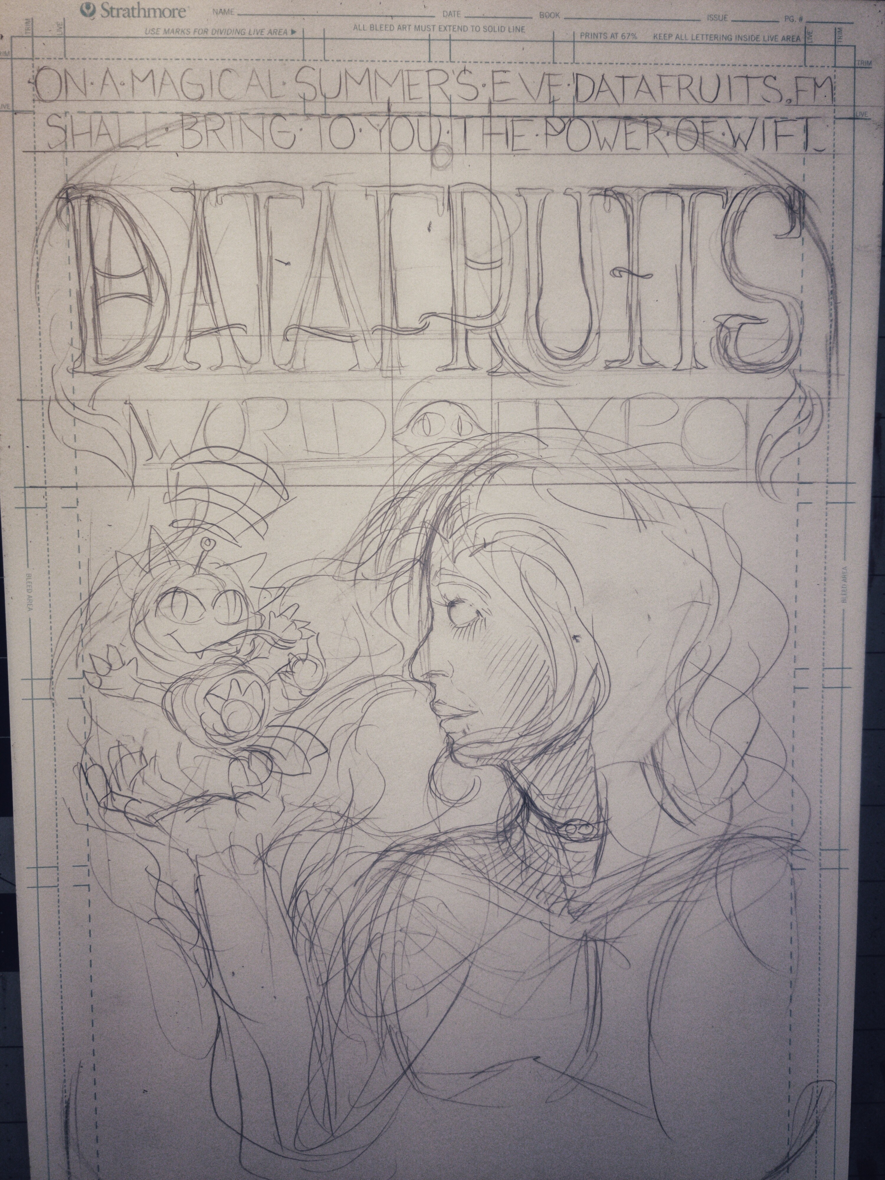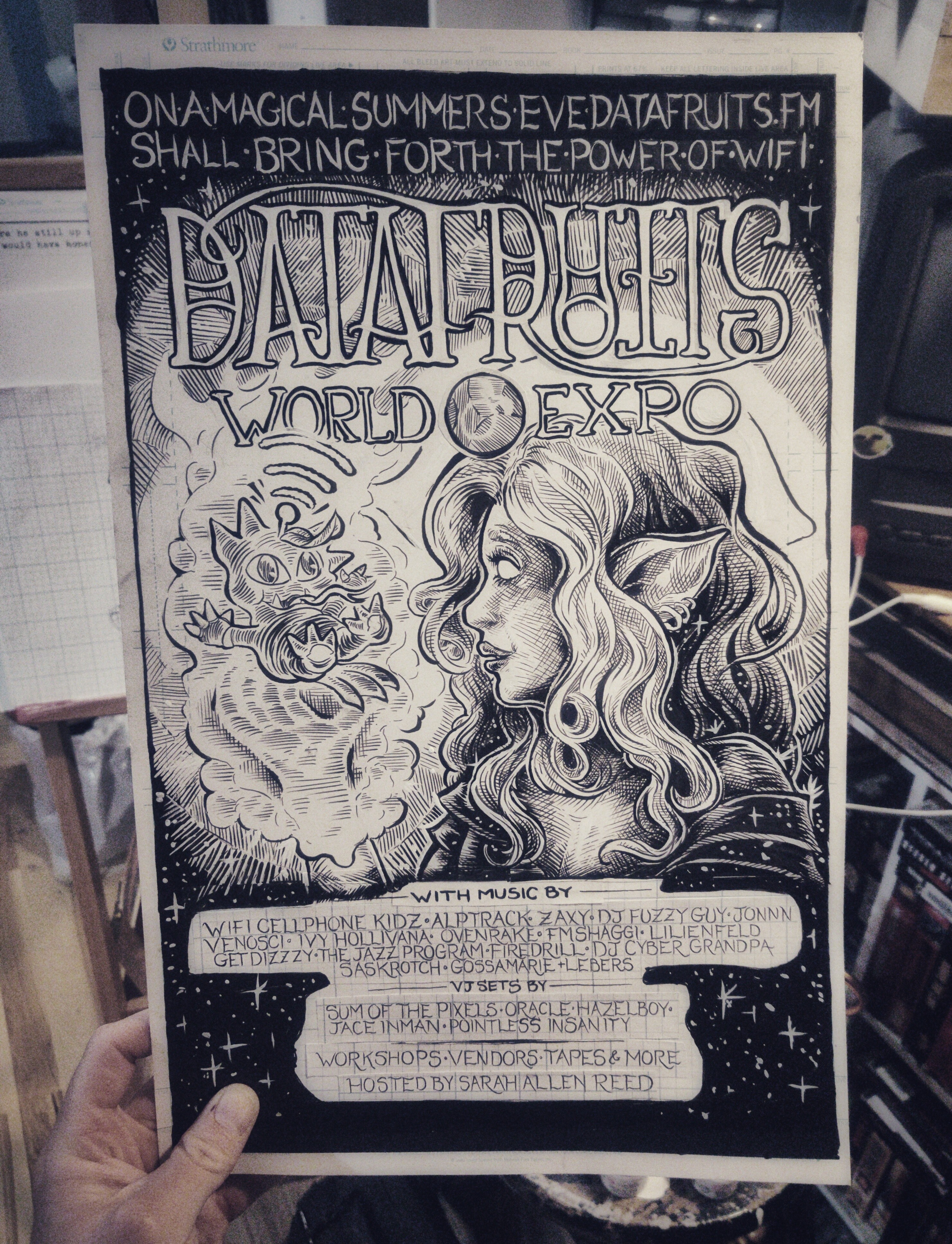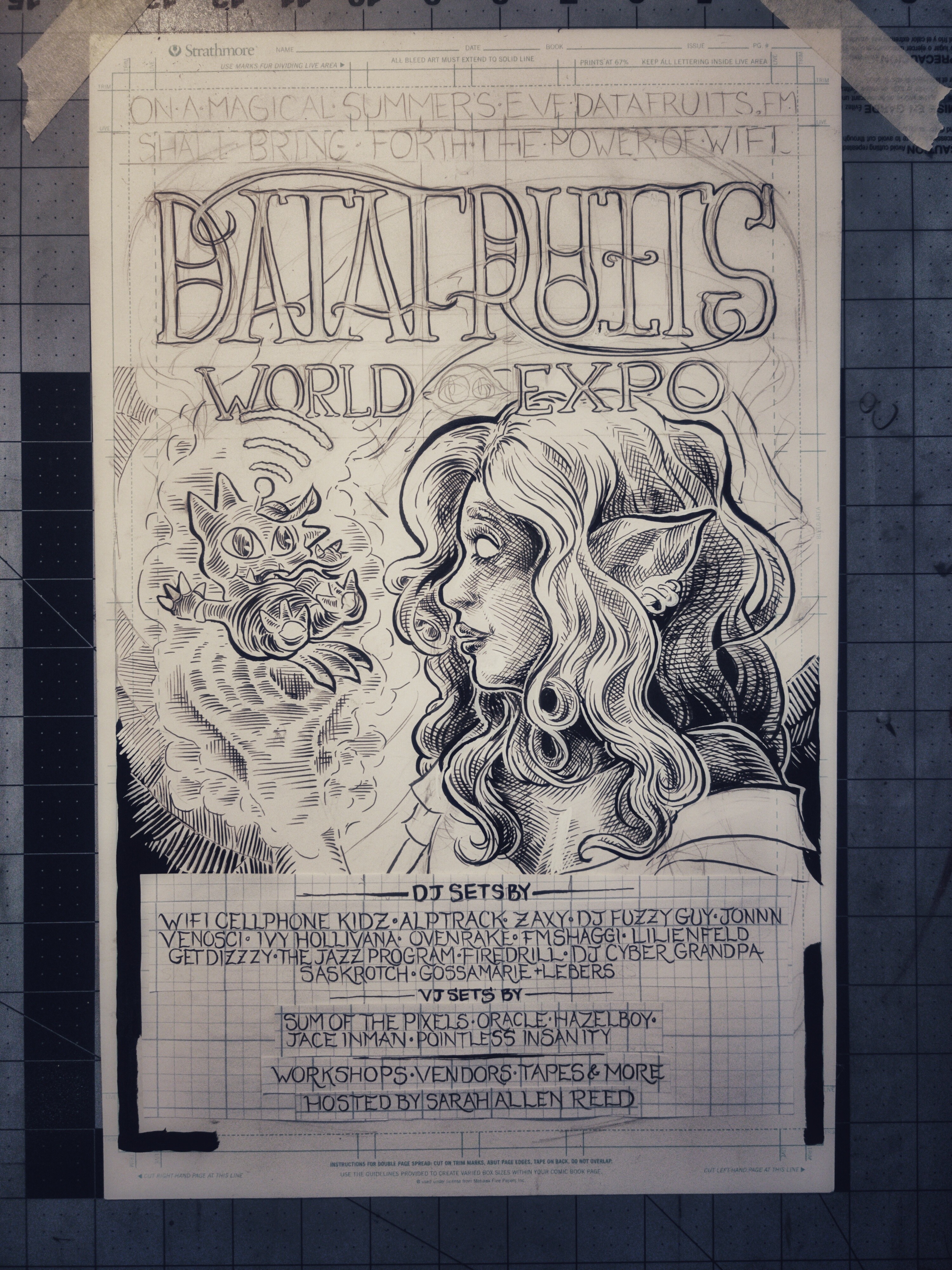 First and second pass of inks down. I wanna point out here that the lil' guy there in the witch's hand was designed by Datafruits' own Zaxy. His name is Beamsprout, if you were curious.