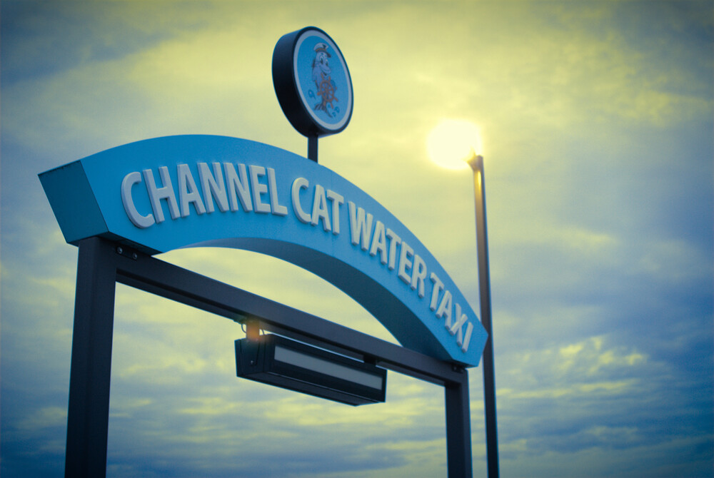 The next few are me learning split-toning in Darktable. Here's the Channel Cat Water Taxi sign.